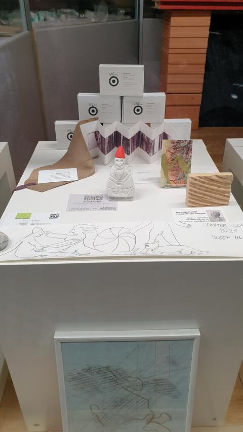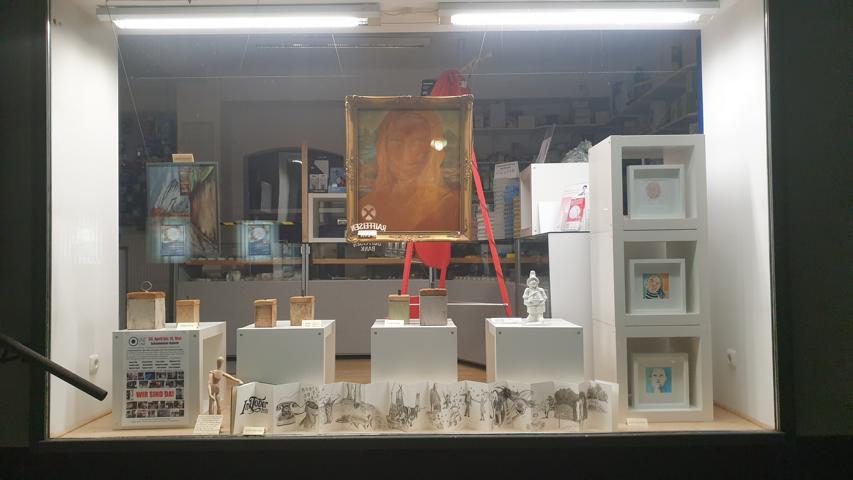 in der Pandemie waren 2021 viele Fachhandelsgeschäfte des nicht täglichen Bedarfs geschlossen. Die Händler stellten in dieser Zeit einen Platz in Ihrem Schaufenster für die Künstler zur Verfügung. So konnten die Einwohner beim Schaufensterbummel, denn Spazierengehen war im Lockdown erlaubt, die Auslagen der Händler und die Kunstwerke der Künstler betrachten. Es entstand ein kleiner Kunstspazierweg.
