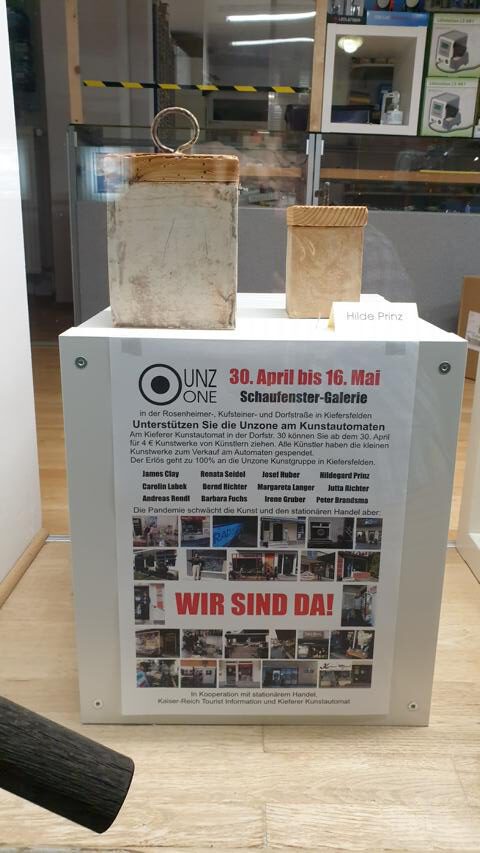Im April machten wir eine Aktion zusammen mit dem Kieferer Kunstautomaten. Parallel dazu organisierten wir eine Schaufensterausstellung in Kiefersfelden. Verantwortlich für die Aktion war Renata Seidel und Jutta Richter.